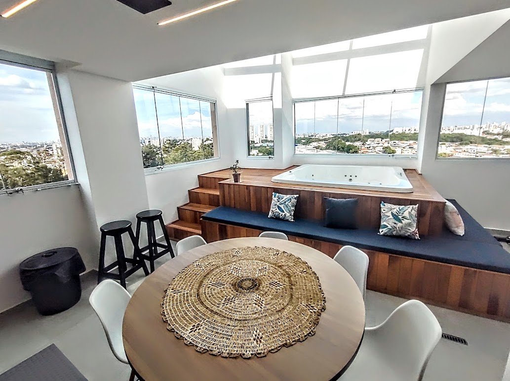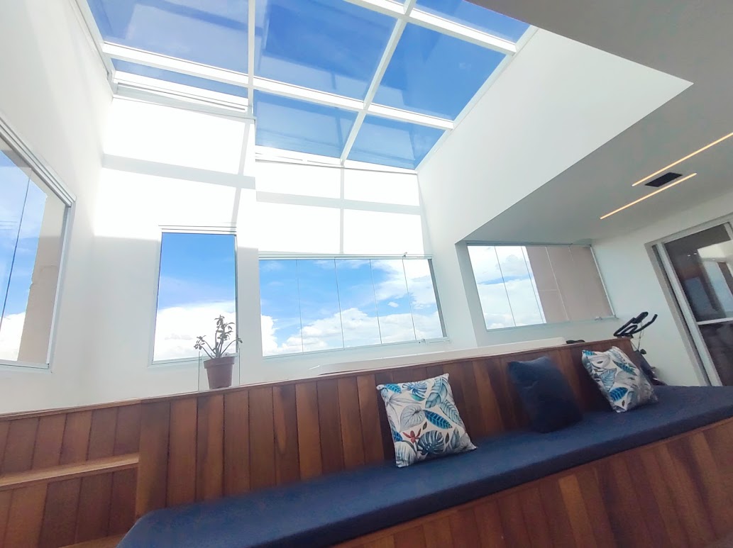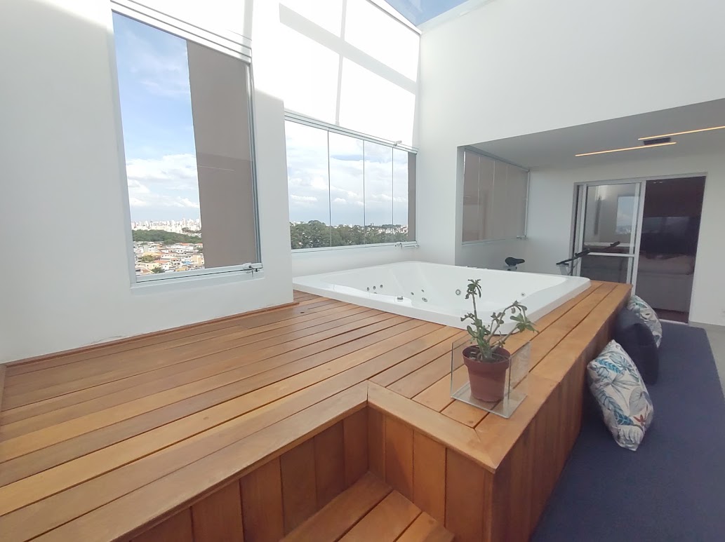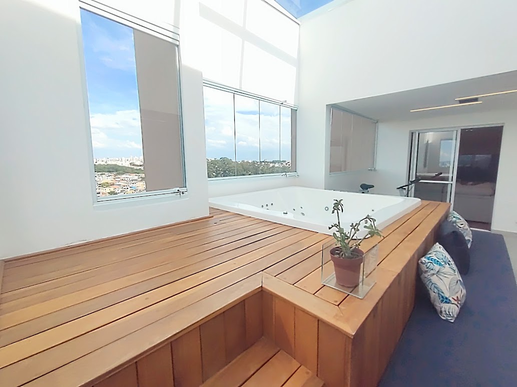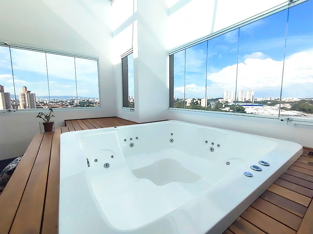 Área superior, toda área externa está com fechamento em vidro para que você e sua familia tenham ótimos dias para curtir um churrasco ou simplesmente ao aproveitar a Jacuzzi de sua cobertura.