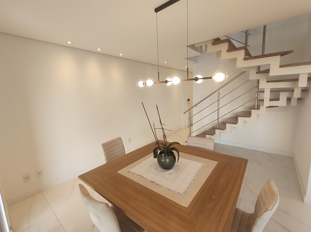 3 Suítes, sendo uma suíte máster no andar superior com porta balcão voltado para a Jacuzzi, as outras duas suítes ficam no piso inferior.