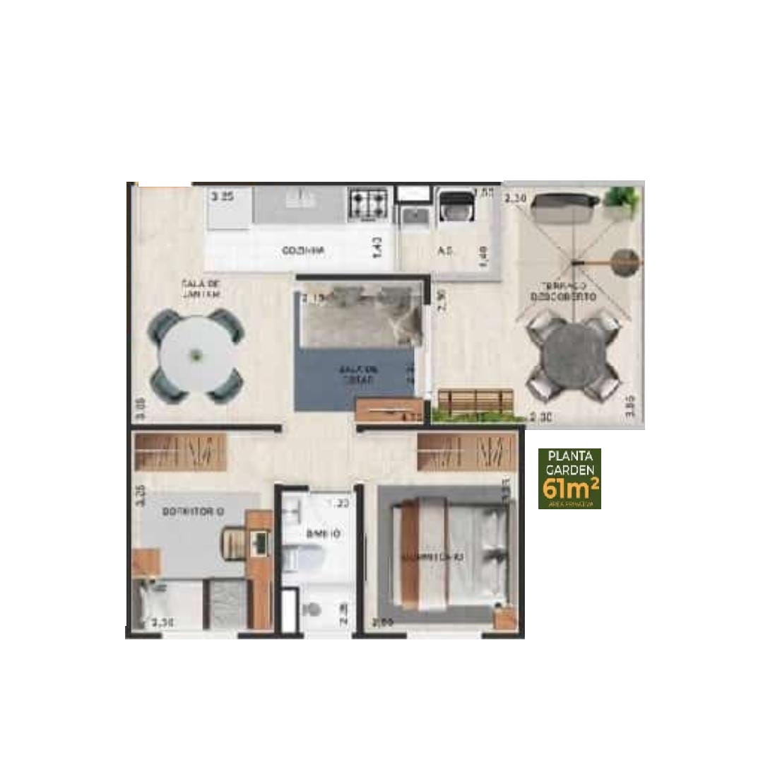 Descrição da unidade - 50,47m²- 2 Quartos- 1 Banheiro- Varanda Integrada- 1 Vaga de Garagem
