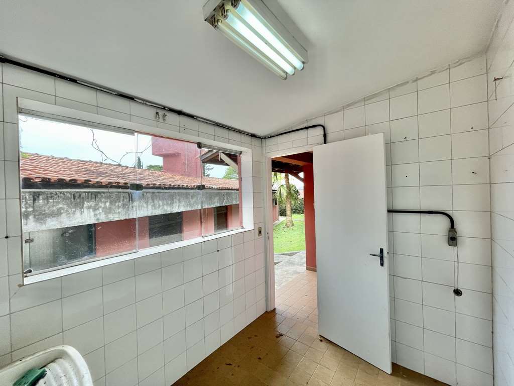 Área de serviço aberta ensolarada e lavanderia fechada com tanque.Jardim dos fundos com frutíferas: jabuticaba e lichia.