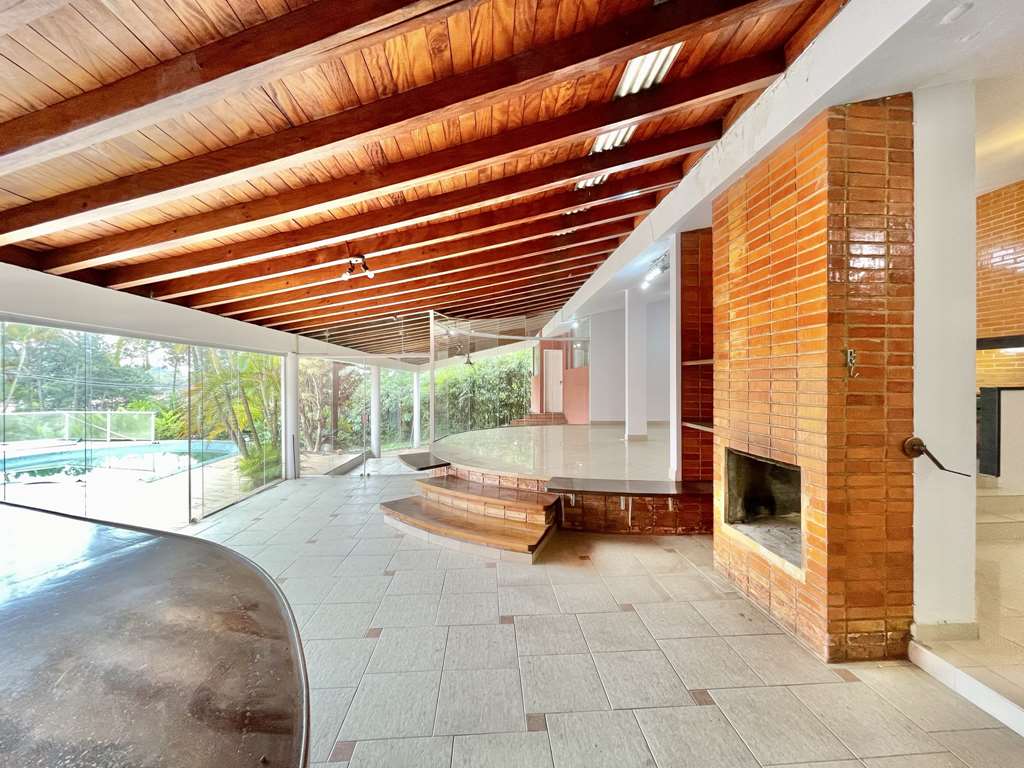Living envidraçado com 5 ambientes, voltados para o quintal com lazer panorâmico: varanda, piscina e churrasqueira.Estar, jantar com aparador e gabinetes, bar, lareira dupla face e TV.Piscina de alvenaria 5m x 5m, revestida em vinil, iluminada, com guarda corpo de vidro, porcelanato rústico antiderrapante, solarium e casa de máquinas.
