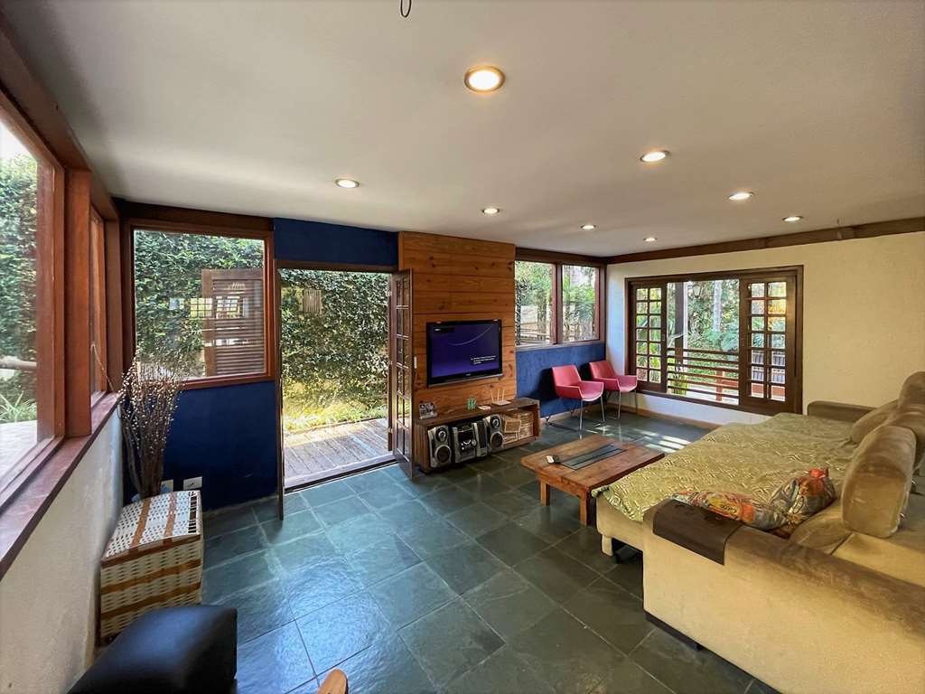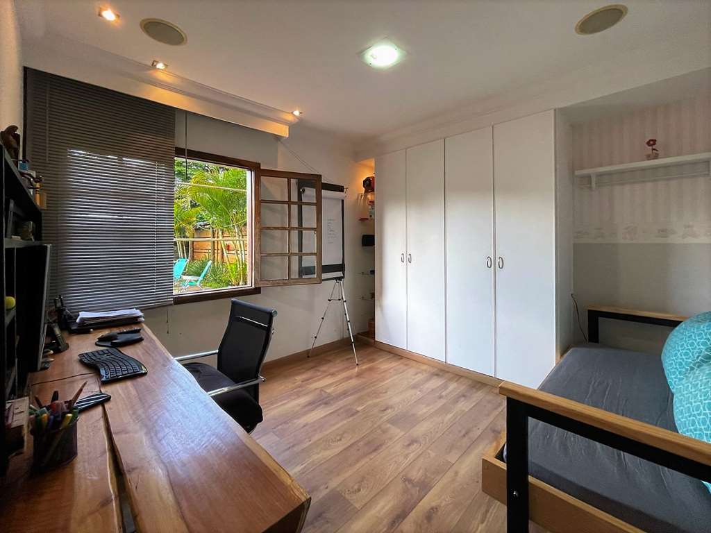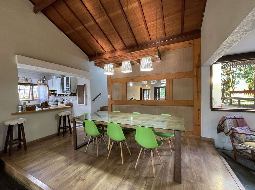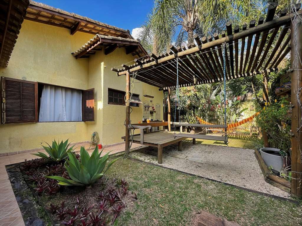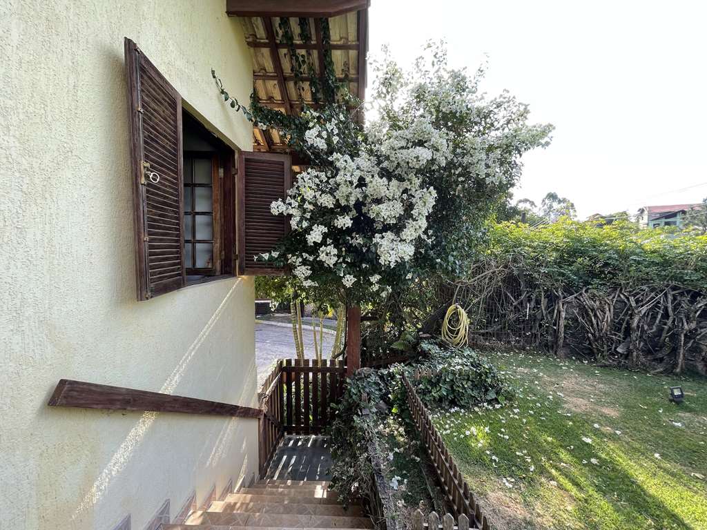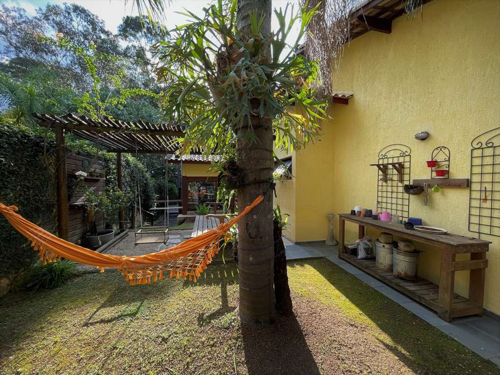 Ótima casa rústica com muita natureza, em excelente localização na Fazendinha. Condomínio com apenas 6 casas e muita privacidade. Casa com pé direito alto, bem arejada e iluminada. Imóvel repleto de armários. Portas e janelas em madeira. Pisos em Ardósia, revestimento de madeira, porcelanato, cerâmica e deck. 3 entradas: social, lazer e serviço. Entrada social pela varanda. Lavabo. 4 dormitórios, sendo 3 com armários e 1 suíte com closet. Banheiros com espelho, bancada, pia, gabinetes e box de vidro, sendo a máster com 2 cubas. Living para 4 ambientes voltados para quintal e jardim. Salas de lareira, jantar elevada por um degrau, estar com TV. Quintal com espaço Zen em gazebo com chaise Long, balanços, painel em madeira com fonte e local para redes. Banco balanço no jardim (Namoradeira). Piscina 4,20 m x 2,25 m com iluminação, prainha, escada interna, deck solarium e ducha. Caixa do fogo “praça do fogo”. Espaço multiuso pronto para Orquidário ou construção de um salãozinho para escritório, academia, jogos, música, jogos, brinquedoteca, depósito. Copa cozinha integrada, planejada, com bancada em “U”, 2 cubas e balcão. Área de serviço aberta ensolarada com bancada e gabinetes. Lavanderia fechada , planejada, com bancada, tanque, planejados e dependências de empregada (quarto e banheiro) com mezanino. Horta. Depósito de lixo. Garagem para 6 vagas, sendo 3 cobertas com depósito. Aquecimento: Chuveiro Elétrico. Abastecimento de água: Sabesp. Armazenamento: 2.000 litros. Villas do Sol / Fazendinha Condomínio com 6 casas. Localizado exatamente em frente a portaria do Cond. Euroville Controle de acesso (portão) feito pelos moradores - sistema de câmeras direto no celular dos moradores. Mini Quadra. Playground. Possui um funcionário, um vez por semana, para manutenção e limpeza das áreas comuns. Fácil acesso tanto para a Av São Camilo (miolo da Granja Viana) e Rod. Rap. Tavares, quanto para o eixo da Est. Fernando Nobre e Rod. Castelo Branco / Rodoanel, via Jandira