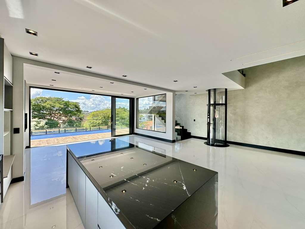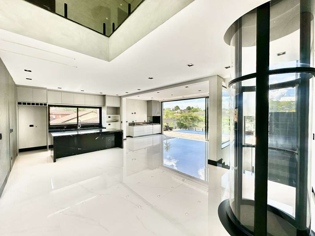 Descrição do imóvel:LINDA CASA NOVA, MODERNA, DE ALTO PADRÃO.- COM ELEVADOR CÁPSULA ELEVAC PARA 2 PESSOAS, QUE ATENDE A TODOS PISOS DA CASA.- ARQUITETA: Maysa Cabral- INTERIORES: Talita Almeida- Projeto executivo de marcenaria (vide imagens) será cedido ao comprador.- Projeto de gesso e iluminação na casa toda.- Portas e janelas em alumínio preto e vidro, com persianas elétricas nos quartos.- Pisos em mármore, porcelanato, porcelanato rústico e antiderrapante na área externa.- Louças e metais Deca.Casa toda preparada para ar-condicionado.- Muros com rufos/ pingadeiras.- 3 ACESSOS: social, serviço / lazer pela rua de cima e garagem pela rua de baixo.- PORTA SOCIAL 1 IMPONENTE DE ALUMINIO PIVOTANTE, com fechadura eletrônica.- PORTA GARAGEM 2 IMPONENTE DE VIDRO PIVOTANTE, com fechadura eletrônica.- Casa envidraçada ensolarada, bem arejada e iluminada.Hall de entrada 1 social.- Escadas de alvenaria iluminadas, com guarda corpo em vidro e metal.- Hall íntimo no piso superior.4 suítes preparadas para ar-condicionado, com persianas elétricas, sendo 2 com terraços e a suíte master com closet.- Banheiros com torneiras mono comando, box de vidro, nichos e ralos horizontais.- Sendo a master com 2 cubas e banheira.Lavabo com torneira monocomando.- Escritório.Family Room- Home theater mais reservado.- Living para 5 ambientes totalmente integrados, em parte com pé direito duplo.- Estar/lareira gás, almoço, jantar, churrasqueira e bar.- Cozinha planejada com bancada, ilha, balcão, armários, gabinetes, 2 cubas inox e torneira gourmet.- Área de serviço aberta ensolarada e lavanderia fechada com tanque e dependências de serviço.- ESPAÇO GOURMET- CHURRASQUEIRA, INTEGRADO À COZINHA E PISCINA.- Churrasqueira com bancada, gabinetes, cuba inox, torneira gourmet e coifa.- Piscina 6m x 2m preparada para aquecimento, solarium mirante com vista, guarda corpo de vidro e metal, preparada para ducha.- Vestiário com acesso lateral.- SALÃO MULTIUSO PROJETADO PARA SALA DE CINEMA. Ideal também para jogos, música, academia, brinquedoteca, estúdio, atelier, home office.- Hall de entrada 2 pela garagem com sensor de presença e acesso direto para o elevador e/ou escada iluminada.Grande depósito embaixo da escada.- Garagem para 6 vagas, sendo 3 cobertas, com um grande espaço ideal para ferramentas, oficina, bicicletas, motos.- Aquecimento: Solar preparado para suporte a gás.- Abastecimento de água: Sabesp.Esgoto: Sabesp.Localizada próximo à divisa com o condomínio Granja Viana II.